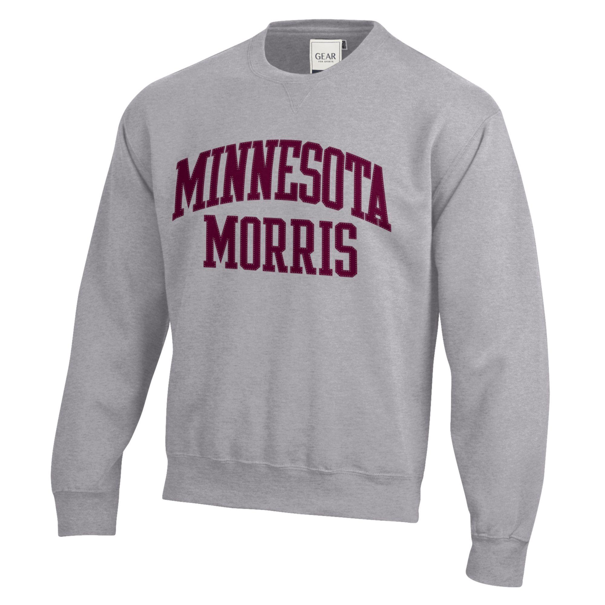 This "better than basic" crewneck from Gear for Sports provides the perfect fit alone or with a shirt underneath. Soft edge tags minimize itching while the V-notch and 1x1 rib at collar, cuff and waistband provide comfort at its best. Minnesota Morris across the chest in tackle twill embroidery.
