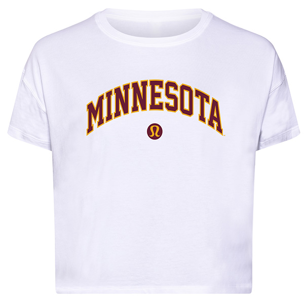 Feel that post-practice bliss all day long in this soft, lightweight tee. This tee is soft and naturally breathable. The added Lycra® fibre is for stretch and shape retention. This tee is a loose fit with a little extra room and is cut above the waist—perfect with high-rise pants. An arched Minnesota is printed across the front, adding a touch of Gopher pride to anyone's wardrobe!
