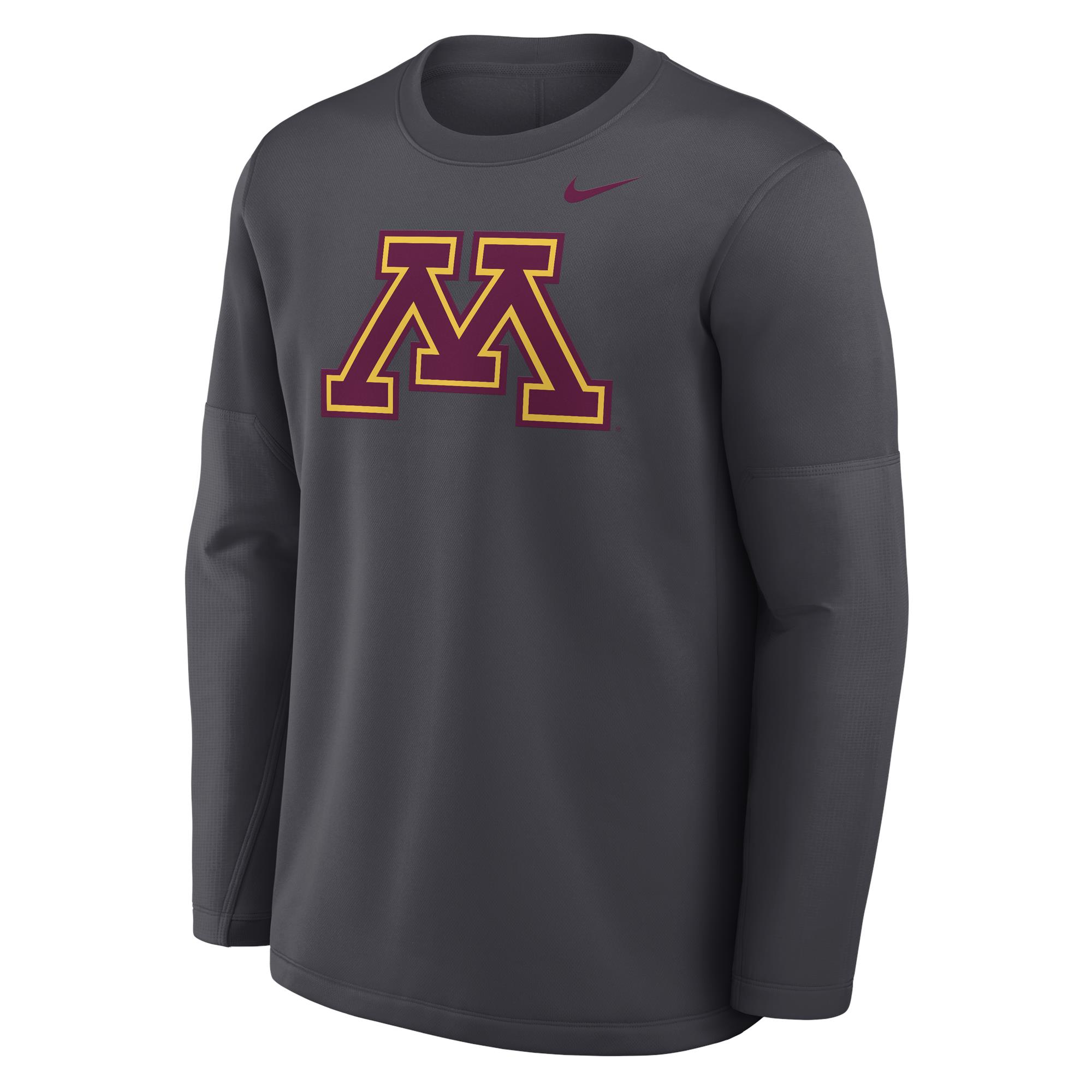 Lead with Gopher pride in this coaches style long sleeve tee! Featuring a bold, oversized Minnesota M front and center, this performance-inspired shirt brings serious sideline energy. Whether you’re on the field, in the stands, or just repping your team around town, this long sleeve keeps you comfortable and ready to go. The fleecy lining makes this shirt perfect for layering on those chilly fall days.