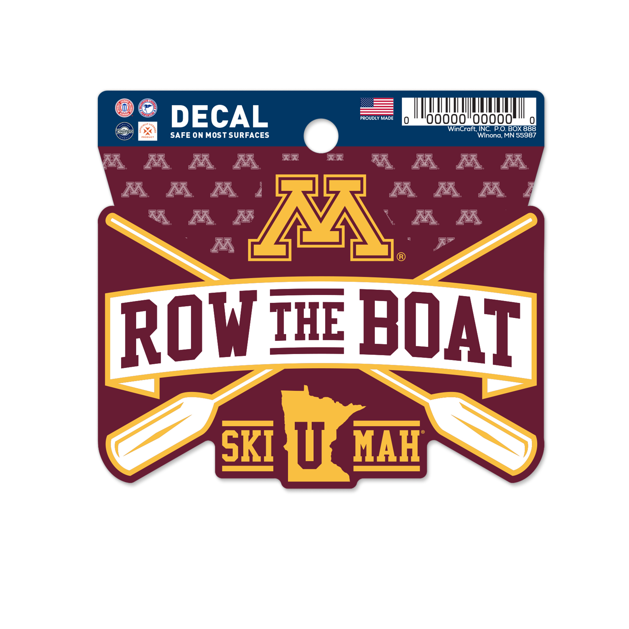 Show off your Gopher pride with this Row the Boat decal! It features a Minnesota M above the popular Row the Boat slogan with oars underneath and a Ski-U-Mah. Perfect for any Gopher fan!