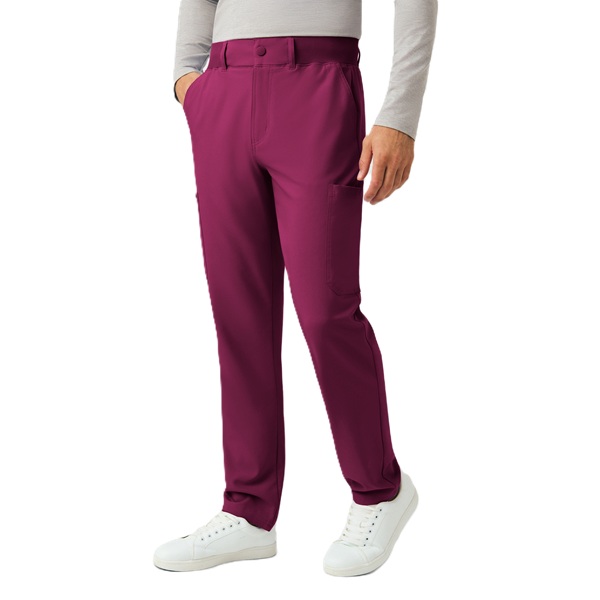 These versatile Men's fit, zip fly, tapered leg pant have a stretchy rib knit waistband with an internal adjustable drawstring, for comfort and security. This pant also provides a generous amount of storage that meets the demands of your busy workday with 2 front pockets, 2 Cargo pockets, 2 Back pockets and a bonus hidden front money clip pocket and a hidden back zip pocket.